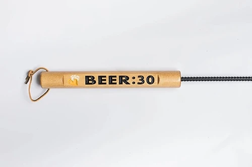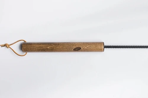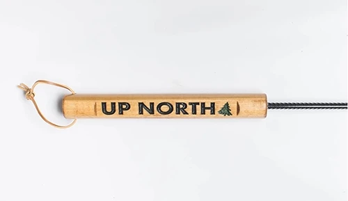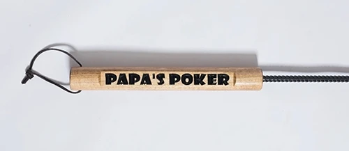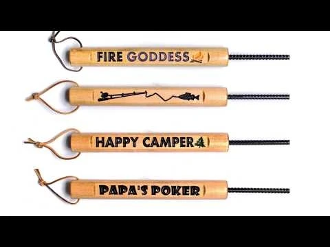 Ame High fire pit pokers are hand made in Wisconsin and have an engraved handles that are stained with golden oak or dark walnut and coated with three coats of spar-urethane. The poker rod is made of 3/8 inch 60 grade steel and has a pointed tip with a welded hook for pulling. The rods are coated wtih primer, Rustoleum heat paint and finished with an outdoor gloss for shine. Each rod has a leather strap and protective rubber end caps for storing. Ame High backs their products with a 1 year manufacturer warranty.