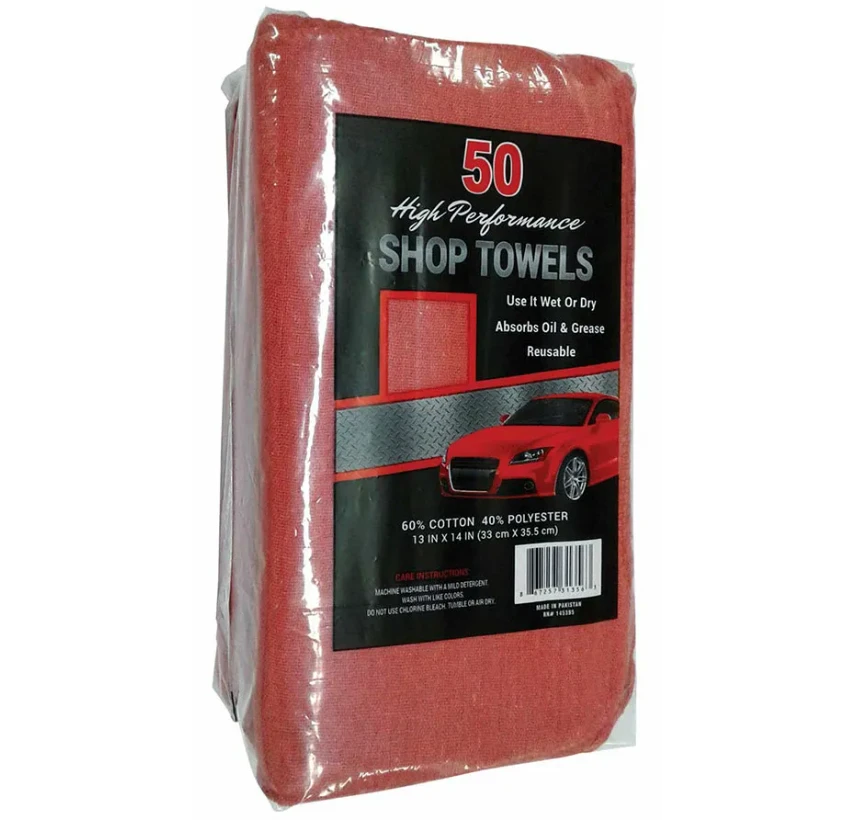 American Textile High Performance Shop Towels are just what you need in your shop because they are reusable. Made of a cotton and polyester blend, they can be machine washed with like colors. Once they’ve been washed, they can be used on vehicles and other shop surfaces. You can use these towels wet or dry to absorb any oil or grease spots around your shop or your car. These high-performance towels will get the job done.