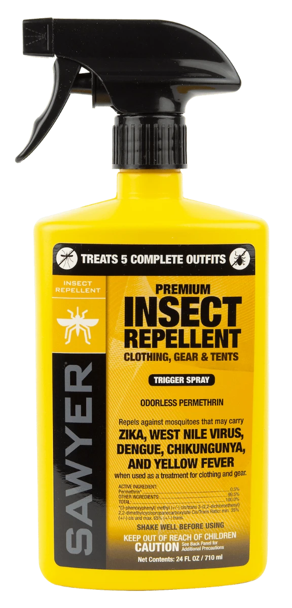 Odorless after drying, Sawyer Permethrin Fabric Treatment can be used to treat a variety of fabrics like clothing, gear, and tents. A successful application of this insect repellent treatment is effective against mosquitoes and ticks for 6 weeks or 6 washes.